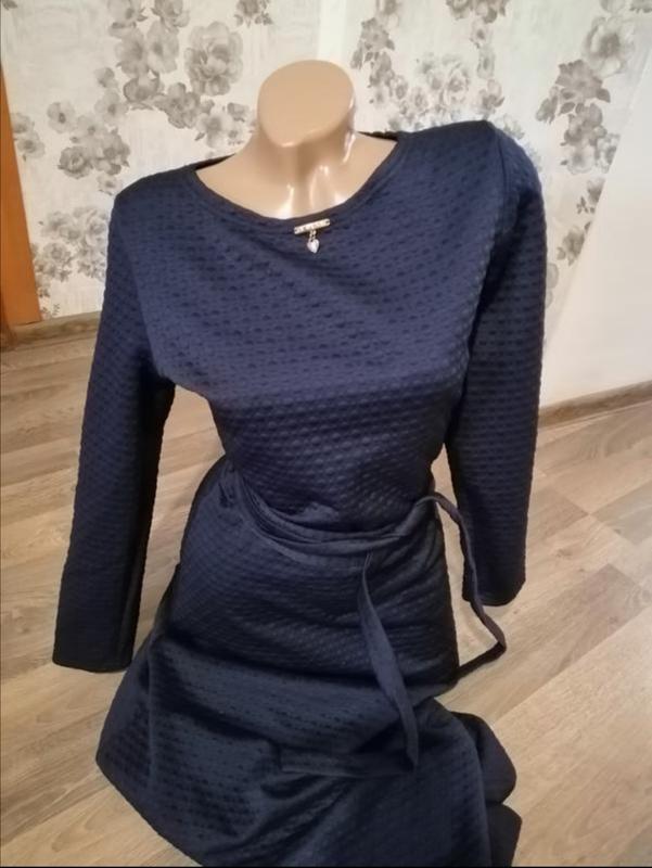 Синее платье из фактурной ткани в пол. Под пояс. Платье в новом состоянии одето один раз.Длина 150, в груди 47-51, талия 40-44, бедра 48-50. Фактурная плотная ткань которая очень хорошо тянется, и согреет вас в холодную погоду.