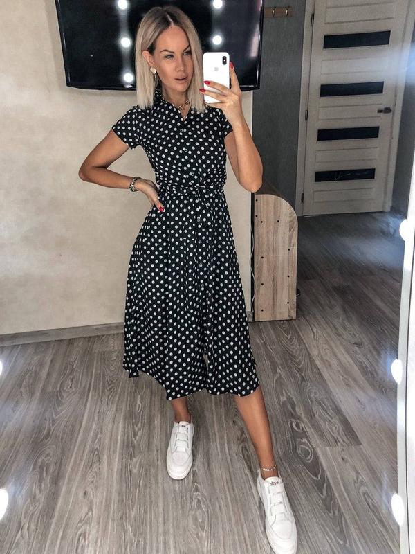 Платье в горошек❤️ Арт: 105 ее📍производитель Одесса ▫️Цвета: лаванда, кофейный, красный, розовый, голубой, чёрный ▫️Размеры: 42-44, 46-48, 50-52 ▫️Ткань: софт