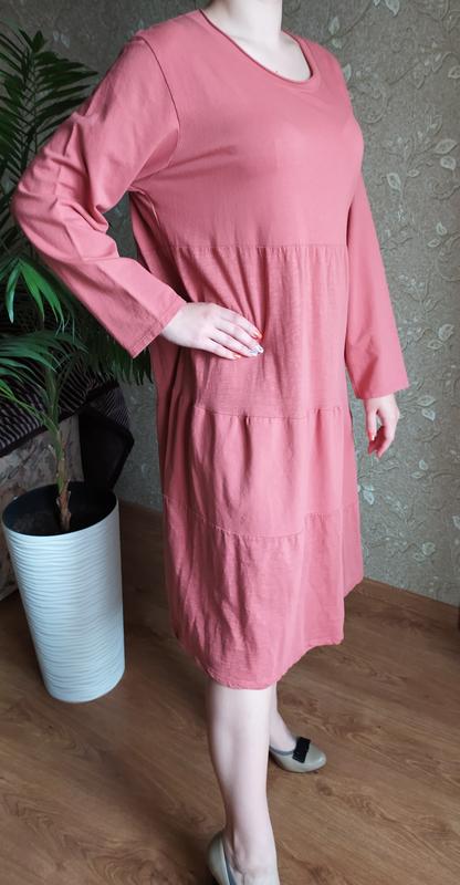 Интересное коттоновое платье. Изделие имеет дизайн состоящий из ярусов ткани. Страна производитель: Турция. Материал: 100% коттон. Размер: 52-54.