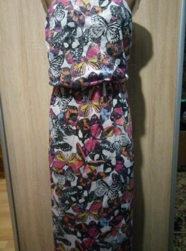 Сарафан с бабочками на талии резинка в боках разрезы ткань тянется отлично садится на фигуре полуобхват груди 58 талии44 бедир64 длина от высота 119 размер на бирке 16 мерки в спокойном состоянии