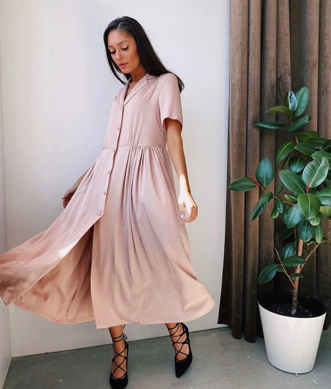 Платье свободного кроя Жозефина из 100% вискозы. ✔️Рубашечный воротник. ✔️Дополнительная сборка по талии. ✔️Пуговицы по всей длине. Colors: Чёрный, Пудрово-розовый, Белый Size :42,44,46,48- (50,52 + 50 грн)