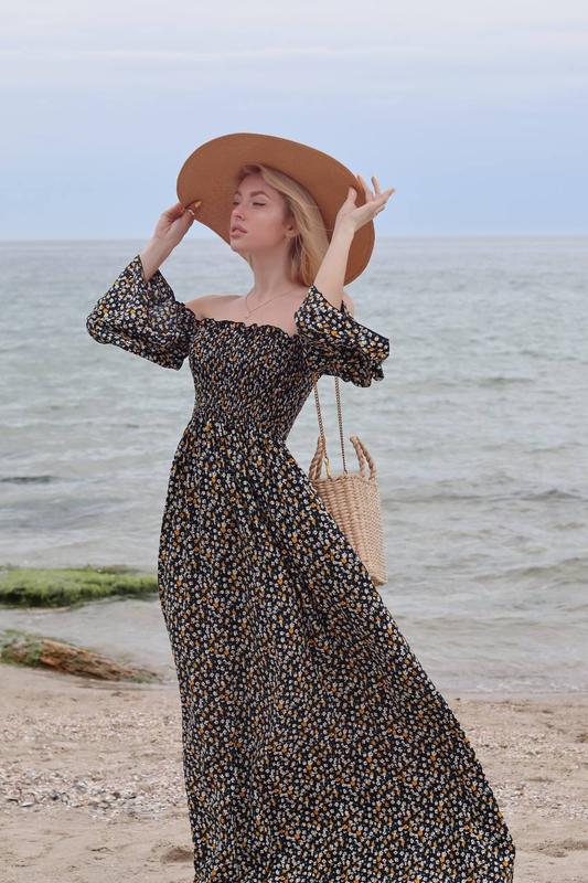 Летняя новиночка Платье из эксклюзивной принтованной ткани супер-софт. Зона декольте и спинка выполнена ниткой- резинкой Нарядное, и невероятно красивое платье добавит нотку романтизма в повседневную жизнь. Состав : 80% полиэстер 20 % лайкра Размер: 42-48