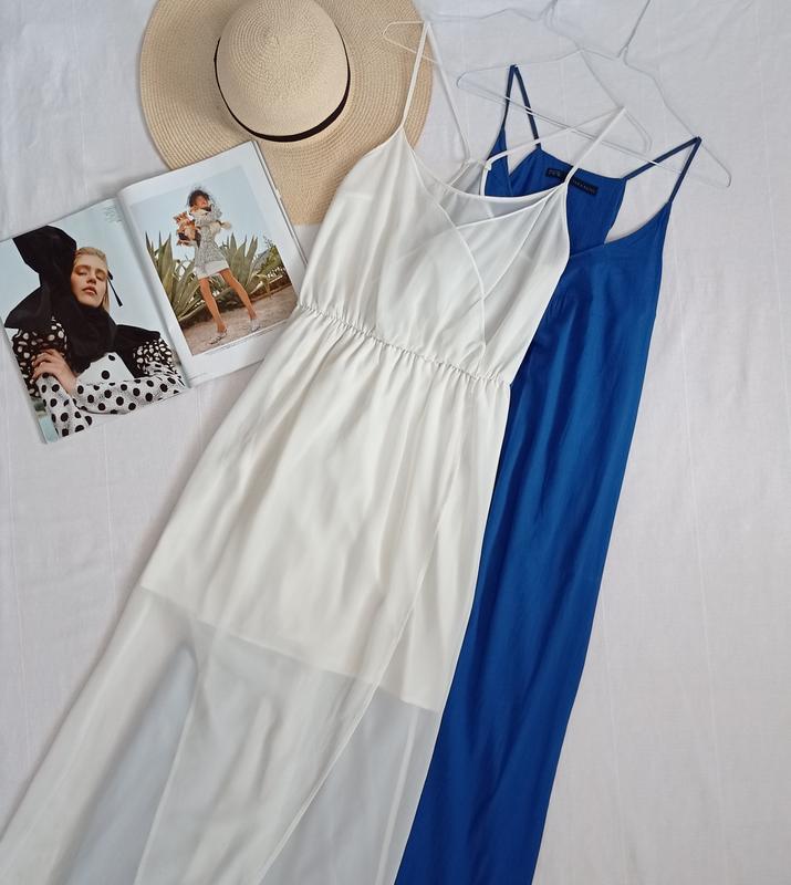 легке літнє плаття на брителях від Zara з тонкого шифону на запах, розкішно виглядає на тілі, знизу укорочений підюбник, розмір М/L, ПО грудей 47 см, талія на резинці, довжина 156см