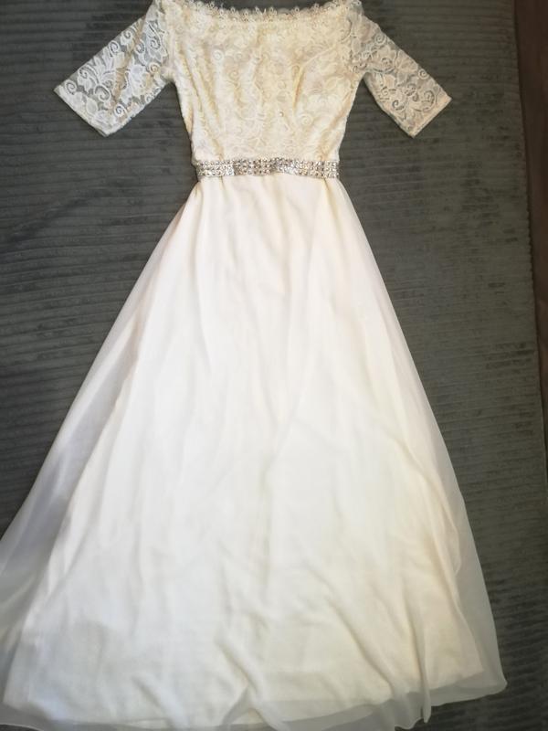 Святкове плаття на будь-яке свято,молочного кольору(розпис, випускний), фасон відмінний підійде на розмір 46-48 верх на будь-яку груди, довжина виробу 144 см, по талії 30(тягнеться) гарний поясок підкреслить потрібне , одягалось 1 раз, ціна 350, купувалося в 3 рази дорожче