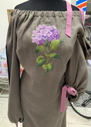 Сукня «Гортензія» та «Маківки» тканина льон, ручна вишивка, колір тканини в асортименті.