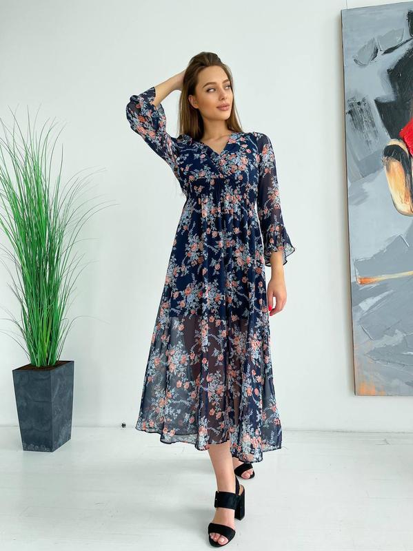 Длинное шифоновое платье ❣️ Мод:656 Цвет:синий,белый,розовый,ментол,желтый,серо-розовый Размер: универсал 42-46 Ткань: шифон на подкладке Длина 124см Цена 530 грн