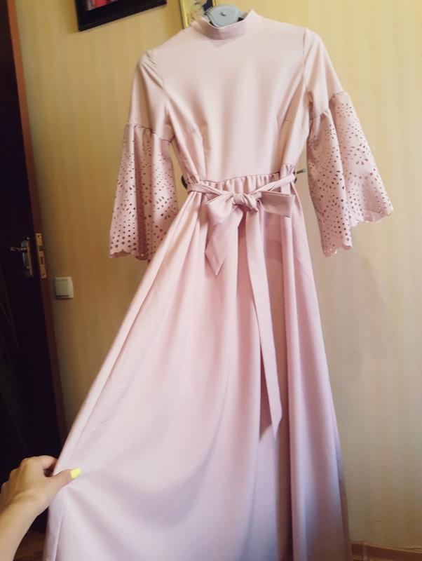 Безопасной оплаты новой почтой - нет Шикарное платье, приятный, нежный цвет. Обалденные рукава с перфорацией, сзади на замке, с поясом
