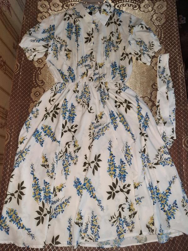 Сукня в ідеальному стані. У використанні не було. Довжина 107 див. Напівобхват грудей 47 см Плечі 42 див. На талії і на рукавах гумка. У комплекті ще є пояс.