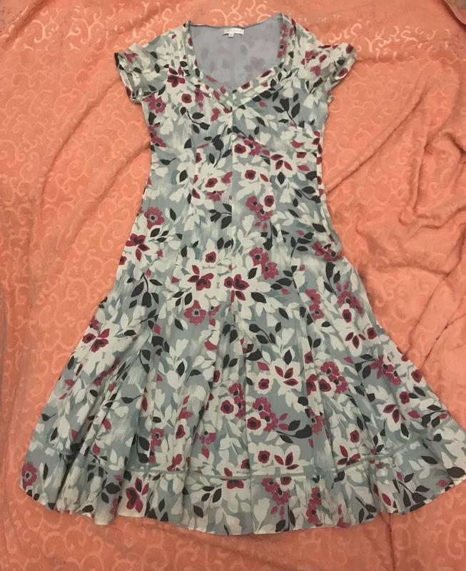 Воздушное платье из тонкого коттона, на подкладке, тоже коттон. Отлично сидит по фигуре, Размер 12. ПОГ 44-45, длина по центру спинки 111 см. В боковом шве потайная молния. Смотрите мою Шафу - есть подарки / бонусы при покупке любой вещи 1:1 🎁