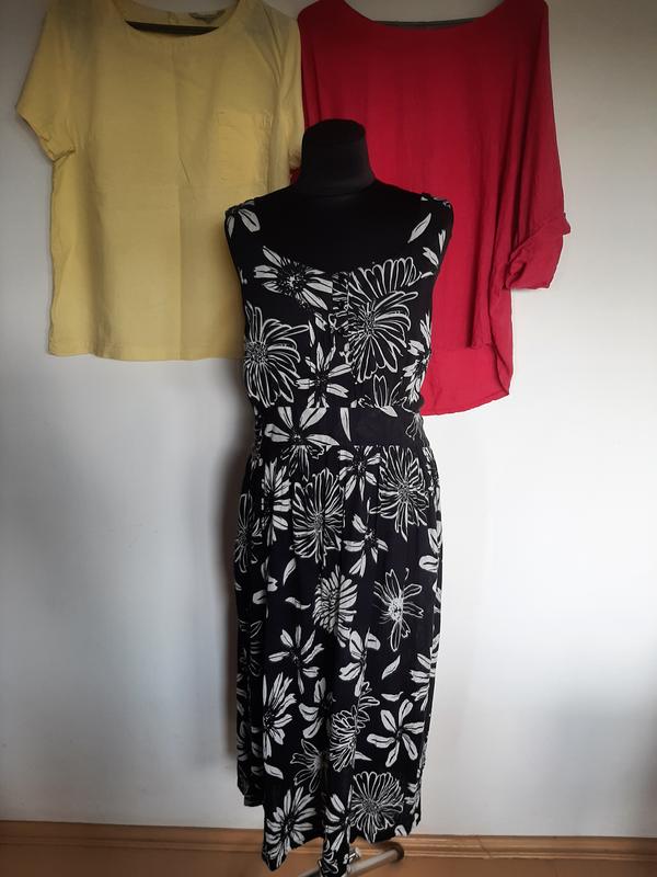 Классное платье - сарафан на широких брительках с поясом по бокам.На спине тонкая резинка - тянется Материал - жатка.ЗАМЕРЫ - ПОГ - 54 - 60 СМ. ДЛИНА С БРИТЕЛЯМИ - 123 СМ.