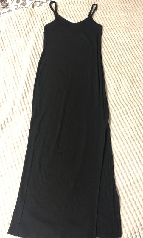 Длинный сарафан с разрезом BERSHKA в рубчик Цвет: чёрный Размер XS Состав: 52% cotton, 43% modal, 5% elastan Длина вместе с бретелями 120 см Разрез 46 см ПОГ 36-46 см ПОТ 36-52 см ПОБ 43-60 см