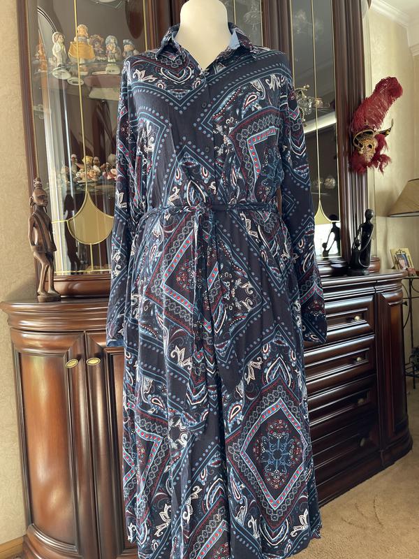 В отличном состоянии. Длина 121 от плеча. Длина рукава 63, пог 59, пот 53, Юбка клёш мах 67