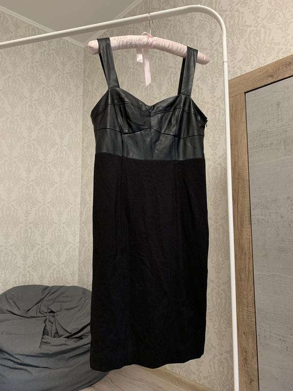 Платье по фигуре с кожаными вставками, можно носить под блузу или отдельно