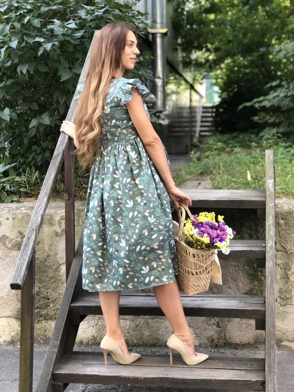 Платье осеннее фемили образ платья из хлопка зеленая детская и взрослая