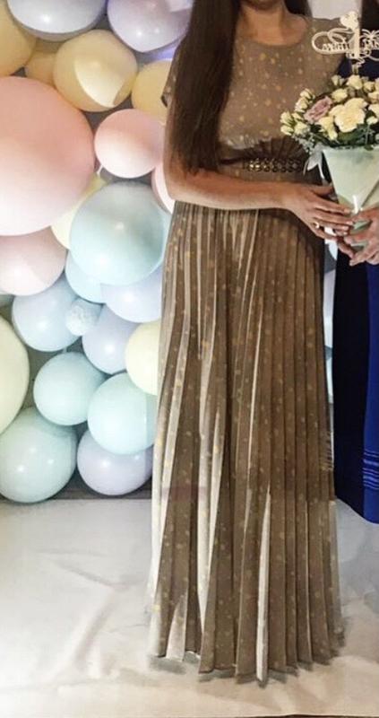 Вечірнє довге плаття гірчичного кольору з жовтими вкрапленнями. Одягала 2 рази. Стан ідеальний