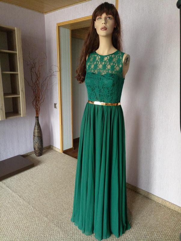 Шикарное вечернее (выпускное) платье пр-во Турция. Красивый глубокий изумрудный цвет. Верх гипюр, низ шифон. Стройнит. Размер наш 48-50. Одевалось 1 раз, состояние отличное. ОГ 47-49, ОТ 38-40