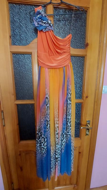 Плаття оранжевого кольору, вечірнє, розмір M, довжина 146см, груди 40см, талія 35см
