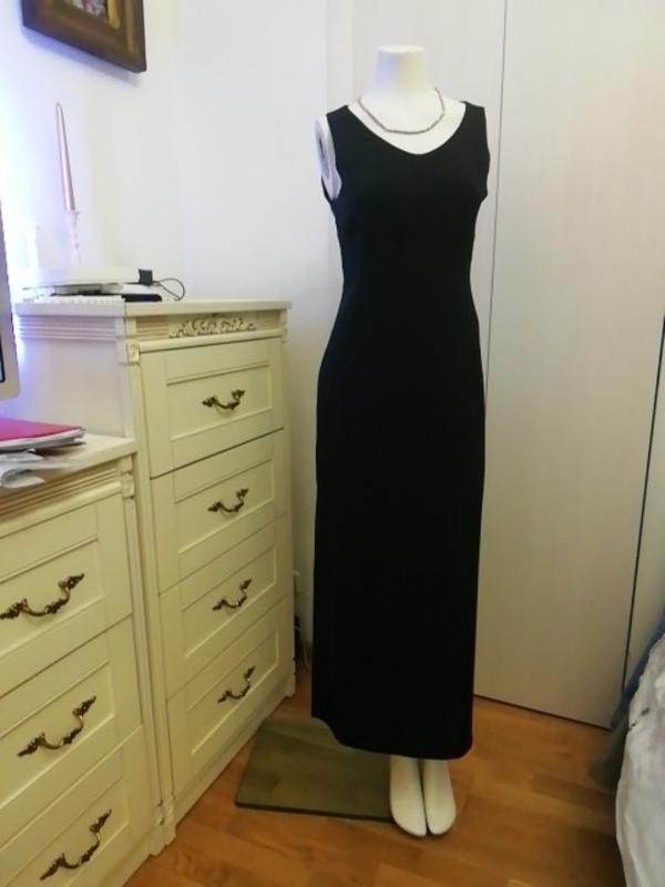 Французское чёрное платье, не просвечивается, хорошо пошито, хороший крой. На теле смотрится великолепно, делает красивый силуэт. Разм. 36,но лучше см. замеры. Дл. 132 см ПОГ 47, ПОТ 39,ПОБ 50. Очень удобное, можно сложить в дамскую сумочку и переодеться, не мнется и всегда при параде.