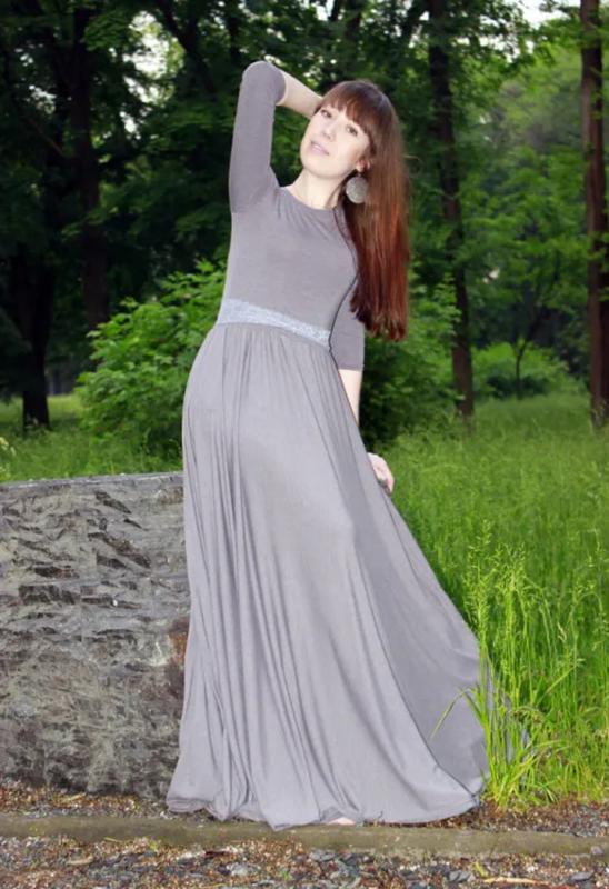 Платье длинное серое, рукав 2/3,очень красивое,качественный тонкий очень приятный к телу трикотаж премиум класса, шила на заказ в ателье, одела один раз на фотосессию. Мой рост 167см, шилось с рассчета на каблук. Подойдет на размер S-M (42-44)