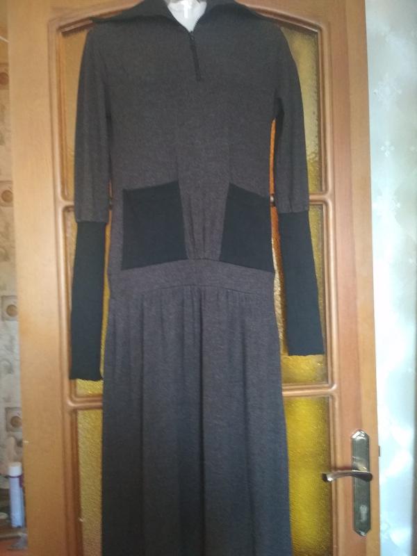 Не обычное платье с притензией,боковые карманы,длинный манжет.Длина в пол.Воротник застёгивается на молнию. Производства Турция.Е К телу очень приятное.