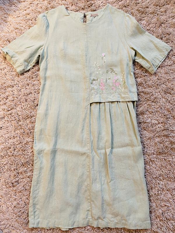 100% лён, красивого мятного цвета, состояние новой вещи (одето буквально один раз, видно по бирке), пр-во Беларусь Рост 170 Обхват груди 96 Обхват бёдер 104