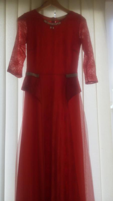 Длинное, красное кружевное платье с шифоном , украшено аксессуарами. Рост около 170-175 см, в талии около 70-73 см. Отлично ложится по фигуре, элластичное. Одето один раз. Перешлю за свой счет укрпочтой. Новую почту оплачивает покупатель.