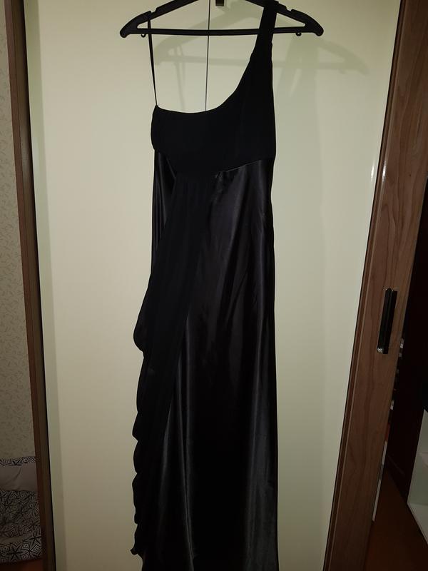 атласное вечерние платье с небольшим шлейфом сзади.