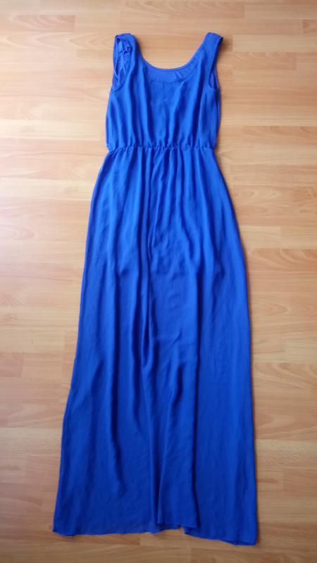 Красивое синее платье макси. Основа-трикотажное платьице мини. На резинке в области талии. Потерялся пояс. Идеально на размер 48. Рост 170.