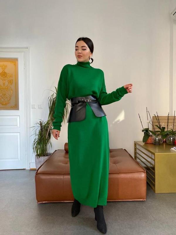 Тёплое платье , оверсайз, размер 42-50 , с поясом, 50 акрил, 50 котон,цвет синий и темный беж.