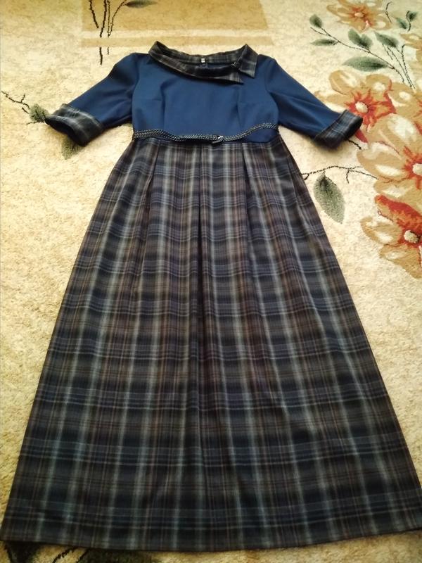 Стильное платье. Немножко б/у, есть катишки в районе талии, практически не видно. Верх тянется, низ нет(очень качественная ткань). Замеры : ПОГ-55 см(немного тянется), ширина плечей-46 см, рукав-38 см, ПОБ-70 см, длинна платья-130 см, ПОТ-45 см.