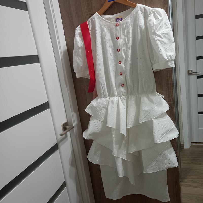 красивое нежное платье из хлопка пог 46-47, талия по резинке 36 ,пот 50 ,поб 48-50, длина 112