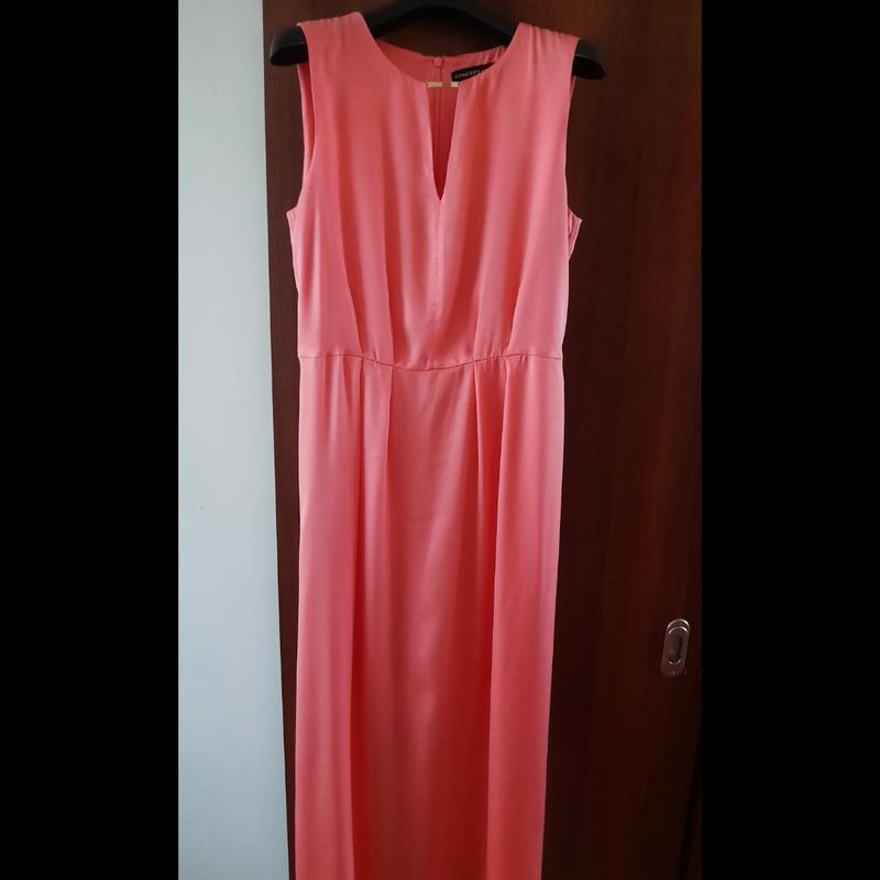 Шикарна сукня з підкладкою, ніжного коралового кольору (перше фото) Позаду замочок. Тканина м'яка, падуча з переливом. В ідеальному стані. Плечі 36 ПОГ 46 ПОТ 37 ПОБ 62 Довжина по спинці 140