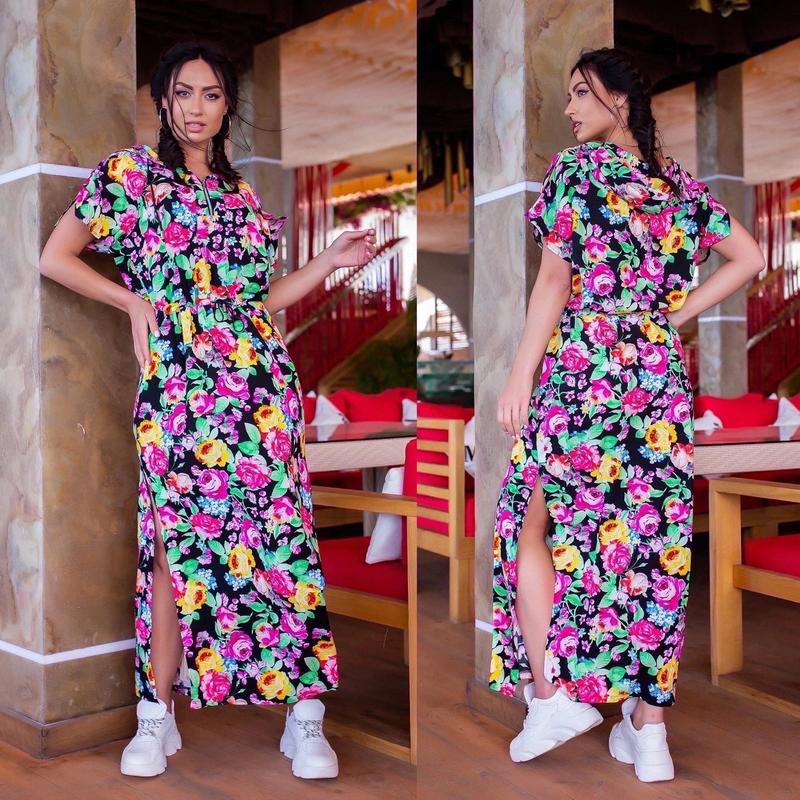SD. Модель 740 платье ‼️МОДЕЛЬ ПОЛНОМЕРНАЯ, ОПИСАНИЕ РАЗМЕРОВ ПОД ФОТО‼️ Цена : 470 гр Размеры : 46-48 жёлто- голубые цветы 54-56 жёлто- розовые цветы 42-44 чёрный фон и мелкие цветы 42-44 тёмно синий фон и мелкие цветы Ткань: штапель (ткань натуральная, дышащая). По бокам есть карманы, на талии утягивающий шнурок, по бокам разрезы, змеечка рабочая. Длина: 148 см Длина рукава от горловины : 29 см Параметры: - 42-44 Объём груди : 104 см Объём бёдер: 108 см — 46-48 Объём груди : 114 см Объём бёдер: 118 см — 54-56 — Объём груди : 128 см Объём бёдер: 132 см