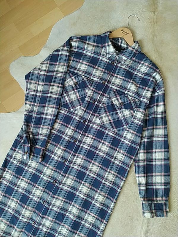 Стильное платье -рубашка в клетку из натуральной ткани. Новое.
