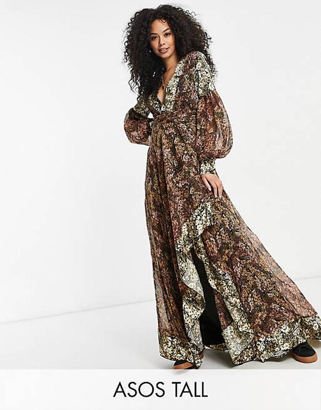 Настоящее королевское шифоновое платье ASOS LUXE LINE - люкс линия бренда! Роскошное платье, где ткань нежнейшая, как шёлк! На подкладке. Цена его на сайте 245 фунтов.! Сатиновые рукавчики на пуговках и сатиновая окантовка по краю платья! Роскошный принт барокко! Сзади платье на скрытой молнии и пуговичках вверху. Лучше на высоких - модель ASOS TALL - означает, что для роста от 168 и выше!!! Размер указан 40EU = 12 = на наш М/L = 46/48, смотрите по детальным меркам: Длина общая платья 168/172 см. Длина до разреза на ноге 105 см. Рукав 72,5 см. ПОГ 49 см.+вырезы. ПОТ 40 см. ПОБ 55 см.