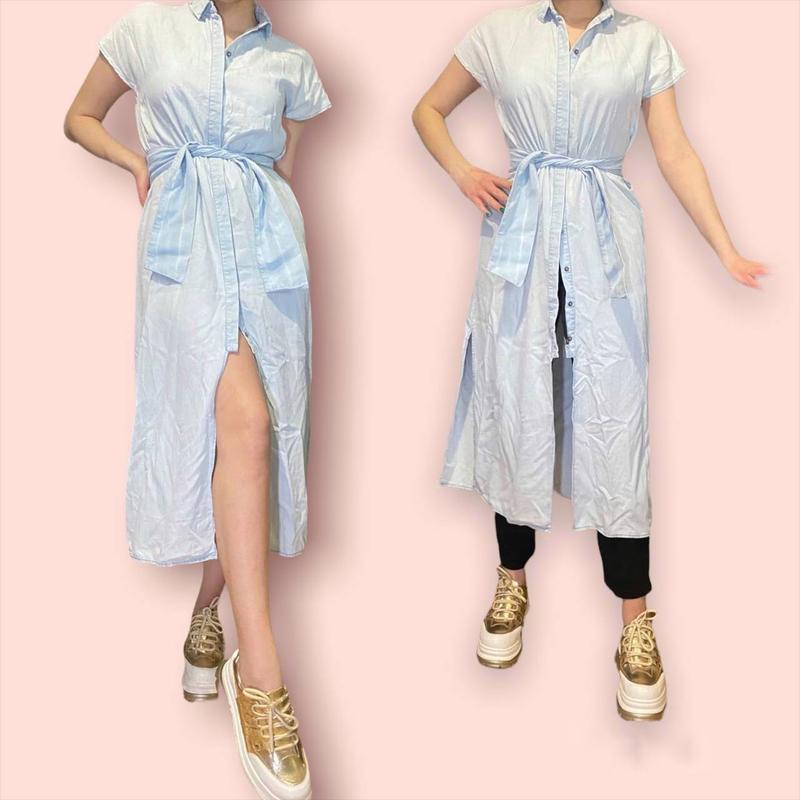 Сукня - сорочка довжини міді з поясом - це відмінний варіант для повсякденного образу спекотним літом! Прямий крій, короткий спущений рукав з відворотом, комфортна посадка. Підкреслити лінію талії можна за допомогою пояса із тканини виробу відомий бренд із данії Objekt Розмір: S-M