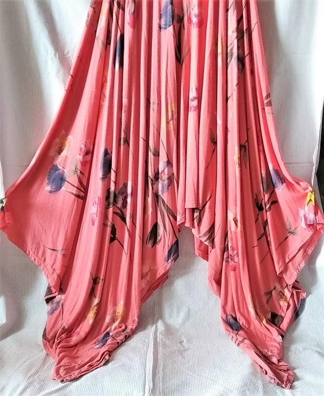 Пречудова,сучасна та натуральна. З чудовим квітковим принтом. Має асиметричний подол. ПІДПИСНИКАМ-ЗНИЖКА 15% КУПУЄТЕ БІЛЬШЕ 2-Х РЕЧЕЙ--ЗНИЖКА 20% Всі виміри зроблені в спокійному (не розтягнутому) стані. ФОТО НА ТІЛІ НЕМАЄ. Довжина(по спині) 110(мах) Завширшки(пахви) 65