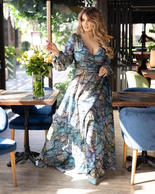 💛💙 Платье № 448 💙💛 Цена:1050 грн Размеры: 42-44, 46-48, 50-52, 54-56 Цена: 1190 грн Размер: 58-60, 62-64 Ткань: шелк Сзади по спине потайная молния. Длина изделия- 150 см Длина рукава- 65 см