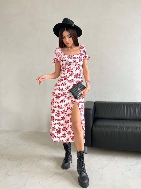 Мод 5317СФ Невероятно стильное, нежное, легкое и нарядное платье Идеальный крой и длина Размерный ряд S,M,L,XL Цвета молочный цветочек, чёрный цветочек, пудра цветочек, красный узор, бело-красный узор, голубой узор, чёрный узор, белый узор Материал турецкий софт( приятный к телу, не колется) Платье можно носить под любую обувь На груди регулируется завязками, по спинке потайная молния,рукавчики на резинке Супер качество