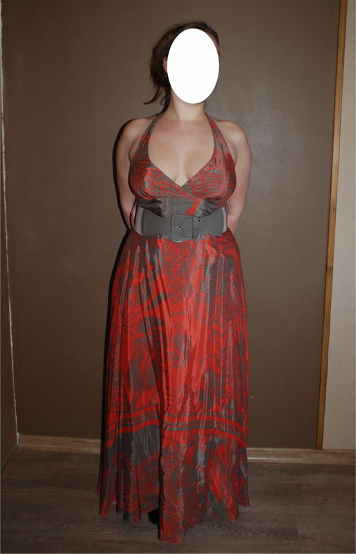 Дуже гарний сарафан, одягався один раз на свято. Розмір вказано 48. Виміри: висота ліфа -20 см, ПОГ по спинці в max розтягнутому стані - 46 см, ПОТ - 38 см, висота поясу/талії - 13 см, довжина зав'язачок - 40 см, довжина від пояса (спідниці) - 90 див. Зріст моделі 160 см, розмір 46-48