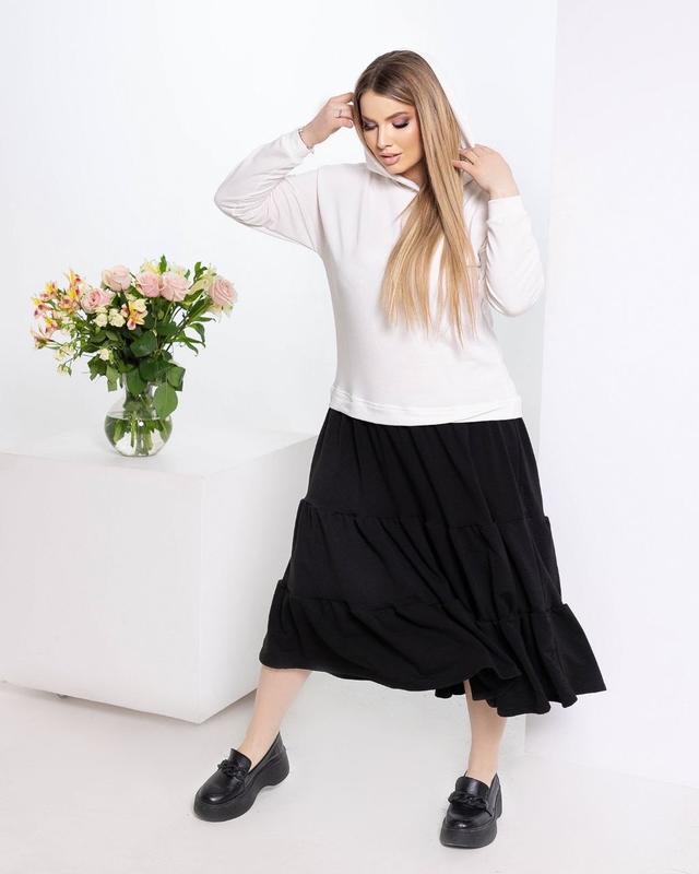 Платье с капюшоном 💖💖💖💖💖💖💖 #1054 Ткань: трикотаж двухнить Цвет: белый с чёрным, малина с чёрным и электрик с чёрным ☘️Размеры: 42-44(1), 46-48(2) Цена: 775 грн ☘️Размеры: 50-52(3), 54-56(4) Цена:855 грн ☘️Размер: 58-60(5) Цена:910 грн