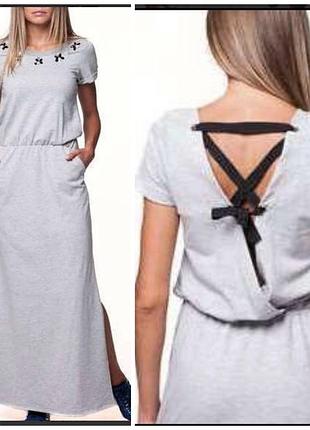 Літнє плаття Anima Gemella Виконано з трикотажу середньої щільності світло-сірого кольору, довге до підлоги, з глибоким вирізом на спині. Сукня стане незамінним у вашому гардеробі. Склад: 100% котон високої якості. Фірмове, Італія.