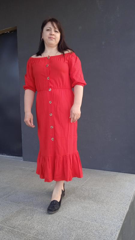 Свободное платье oversized с открытыми плечами, пышными рукавами 3/4 и широким воланом по подолу, декорировано деревянными пуговицами ручной работы. Рюши по линии декольте подчёркивают красоту женской шеи, нежную линию плеч, и слегка визуально приподнимают и увеличивают грудь;) В зависимости от обуви и дополнительных аксессуаров платье выглядит стильно в любой ситуации! цвет красный.