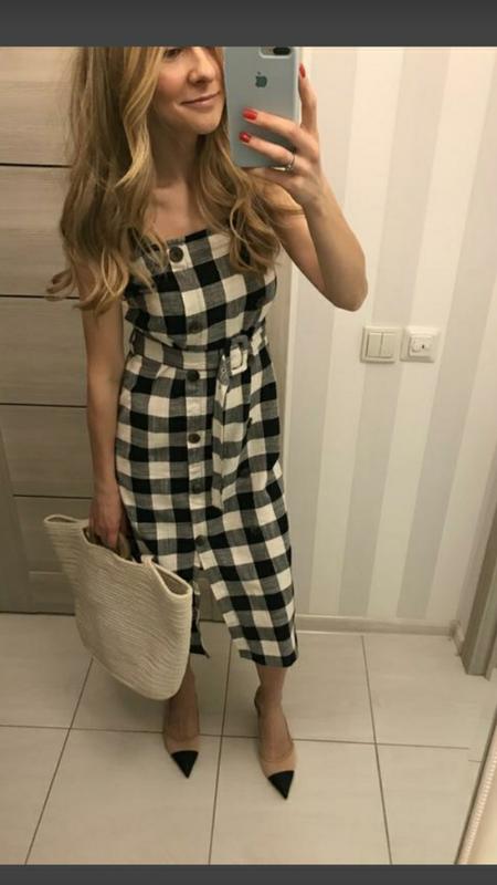 Трендовий шикарний сарафан... міді сукня Має декоративні гудзики Р. 40/12 по бірці...підійде на 38/10 Стан ідеал👍....але втратила десь пояс... можна використати інший Склад 🔥..на літо просто супер...приємний до тіла...не парить💚☀️ Мірочки: Довжина -109 см Пог -43-44см+ резиночка на спині Пот -45см Поб- 48-49см