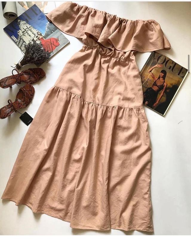 Top shop,есть маленький нюанс) Размер 16UK,M-L Ширина в груди 52 Ширина в талии 40 резинка Длина 111 57%лен 43%вискоза