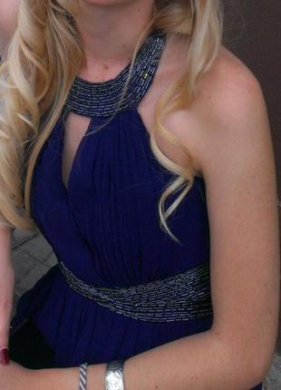 Довге вечірнє плаття, темно-синього кольору. Куплене за кордоном. Одягнене два рази. Сидить вільно за рахунок резинки ззаді.