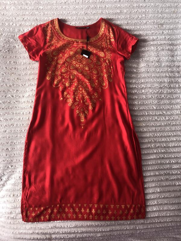 Довжина 96 см По бокам розрізи 100% бавовна Колір червоний Розмір S