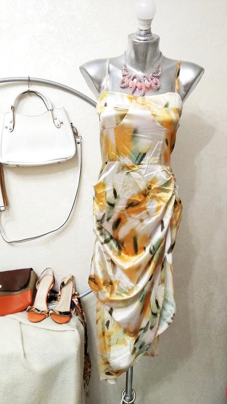 Эффектное платье на бретелях с драпировкой . Бренд CBR. Состав полиестр. Длина 113±5 , регулируется. ПОГ 40-43. Состояние новое с биркой. Есть много качественной одежды и обуви для всей семьи. Приятных покупок!)