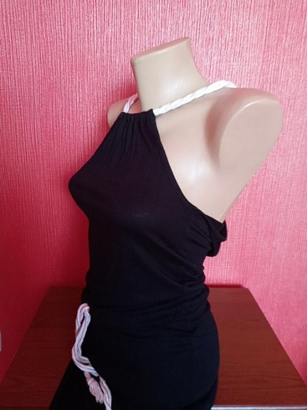 чорне не ідеальні шнурки по шиї,довге з двома розрізами побоках