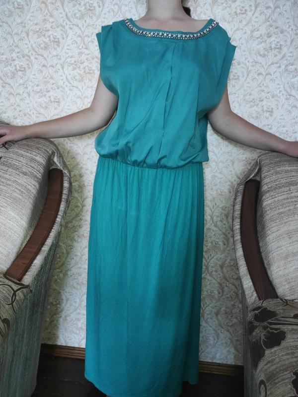 фірмове плаття в чудовому стані. без дірок, плям і затягувань. не вылинявшее. по бірці розмір 52, але красиво сидить і на 50. верх крепдышин, низ трикотаж. якість тканини супер.